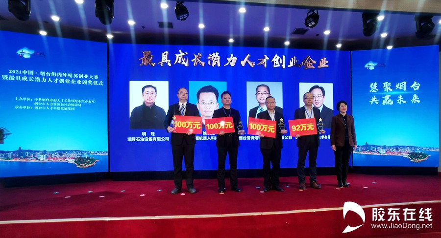 胶东在线12月12日讯(记者 王向荣)慧聚烟台,共赢未来!12月12日,2021中国·烟台海内外精英创业大赛暨最具成长潜力人才创业企业颁奖仪式举行。获得科技之星、产业之星、动能之星的项目及最具成长潜力人才创业企业的代表上台领取奖杯。